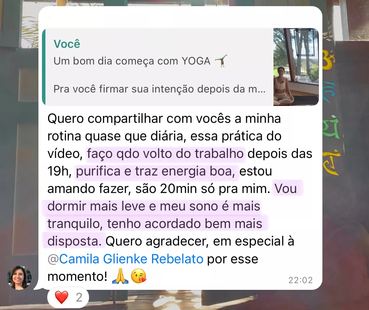Nos encontros ao vivo costumo direcionar as práticas 100% para atender as necessidades dos alunos presentes. Uma aula particular de yogaMED totalmente de graça!